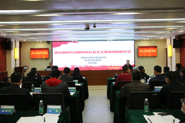 培訓特邀湖南省委宣講團成員、省委黨校教授張四梅就黨的二十大精神作了專題輔導。張四梅教授從全面領會黨的二十大主題及主要成果、深刻認識新時代十年的偉大變革及里程碑意義、不斷開辟馬克思主義中國化時代化新境界、牢牢把握新時代新征程中國共產黨的使命任務、貫徹落實新時代新征程的戰略部署、用新的偉大奮斗創造新的偉業等六個方面進行了全方位解讀,重點對新時代十年生態文明建設主要成就、人與自然和諧共生的現代化根本遵循和行動指南、貫徹落實新時代新征程生態文明建設的戰略舉措等進行了系統闡述,講座內容豐富、觀點鮮明,對與會人員學懂弄通黨的二十大報告具有很強的指導意義。